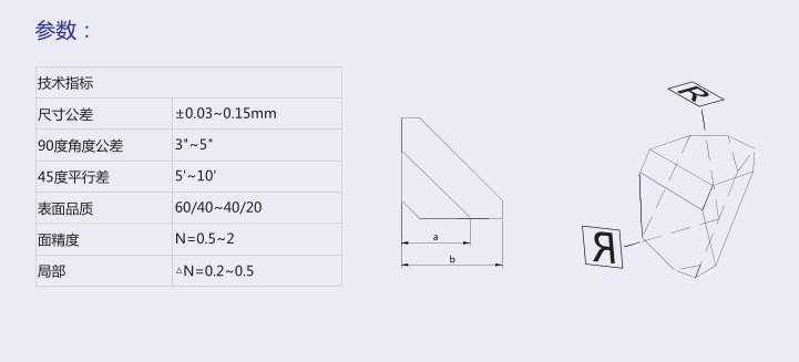 產(chǎn)品介紹: 屋脊棱鏡能同時(shí)反轉(zhuǎn)和翻轉(zhuǎn)圖像,同時(shí)可將光路轉(zhuǎn)折90度,在光學(xué)系統(tǒng)中重要的應(yīng)用。 一般被用于既要光束